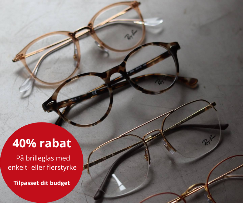 Lige nu kan du spare op til 40% på alle brilleglas, når du bestiller tid til en synstest i butikken.